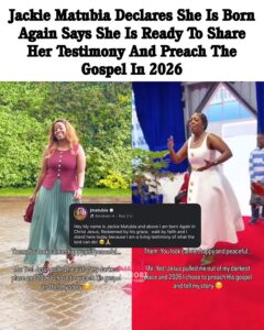 Jackie Matubia has opened a new chapter in her life after publicly sharing her decision to give her life to Christ and commit herself more fully to her Christian faith in 2026. The announcement was made through her social media platforms, where she explained that this step came after a long period of personal reflection and spiritual growth.