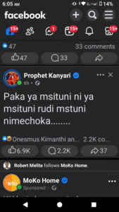 A Facebook post by Kanyari that has triggered mixed reactions.