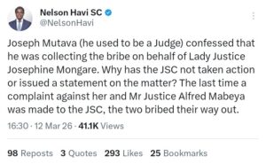 In a post shared on X, Havi alleged that former judge Joseph Mutava admitted to receiving a bribe on behalf of Justice Mongare.