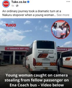 An Ena Coach bus travelling to Nakuru turned tense after a woman was accused of stealing a fellow passenger’s mobile phone, leading to anger and confusion among those on board. The normally calm journey was interrupted when one passenger reported that her phone had disappeared, raising concern about safety inside the bus.