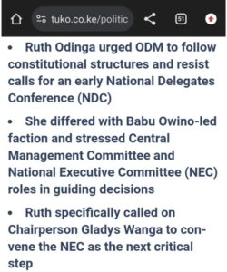 Ruth emphasised that ODM’s strength lies in the supremacy of its members and the orderly functioning of its institutions. She argued that rushing into an NDC without exhausting internal processes risks weakening party unity and discipline.